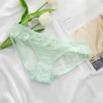 Be the first to review “Bow tie lace underwear for women, sexy tulle underwear with wooden ear edge design, pure cotton crotch for women’s underwear” Cancel reply