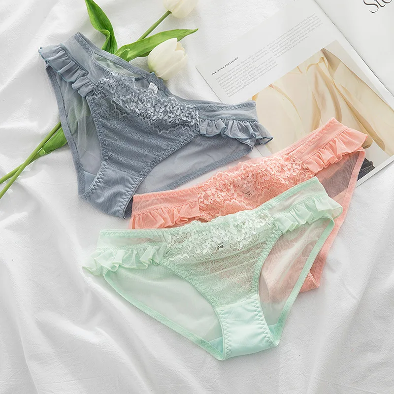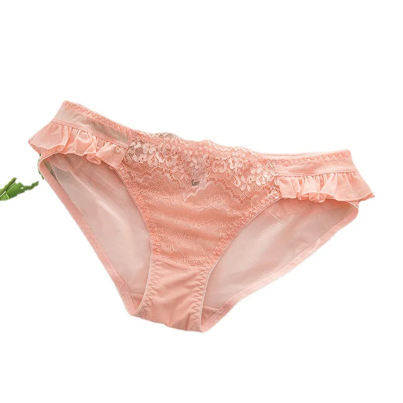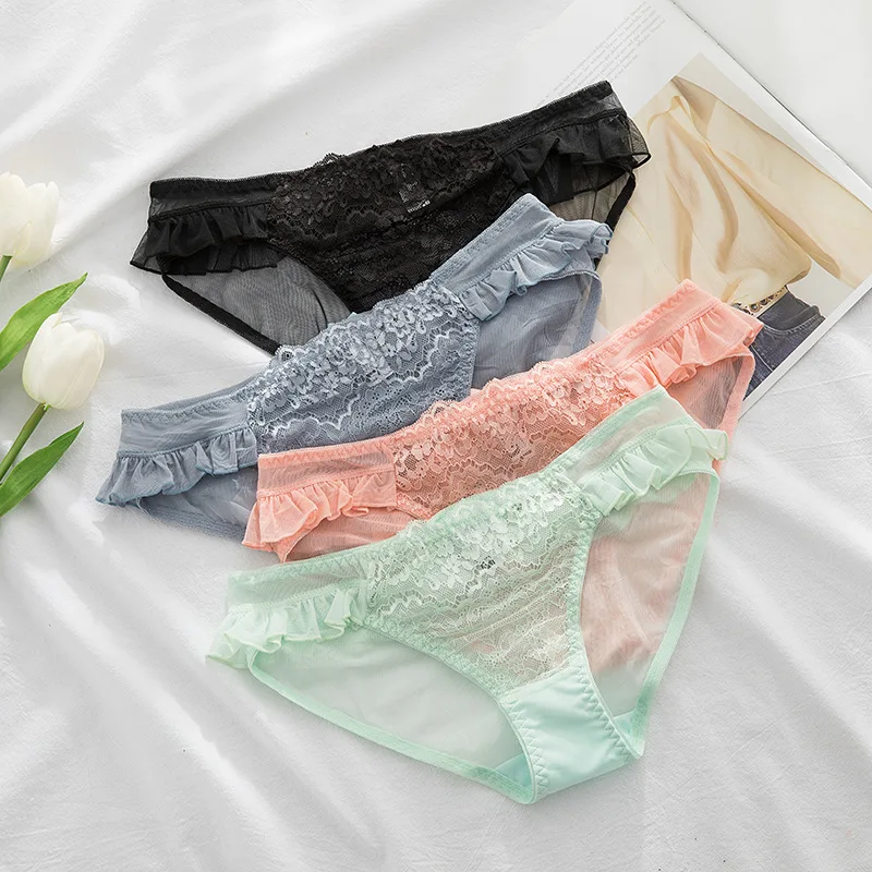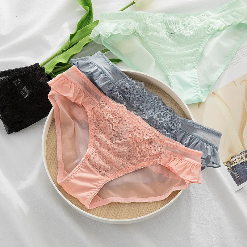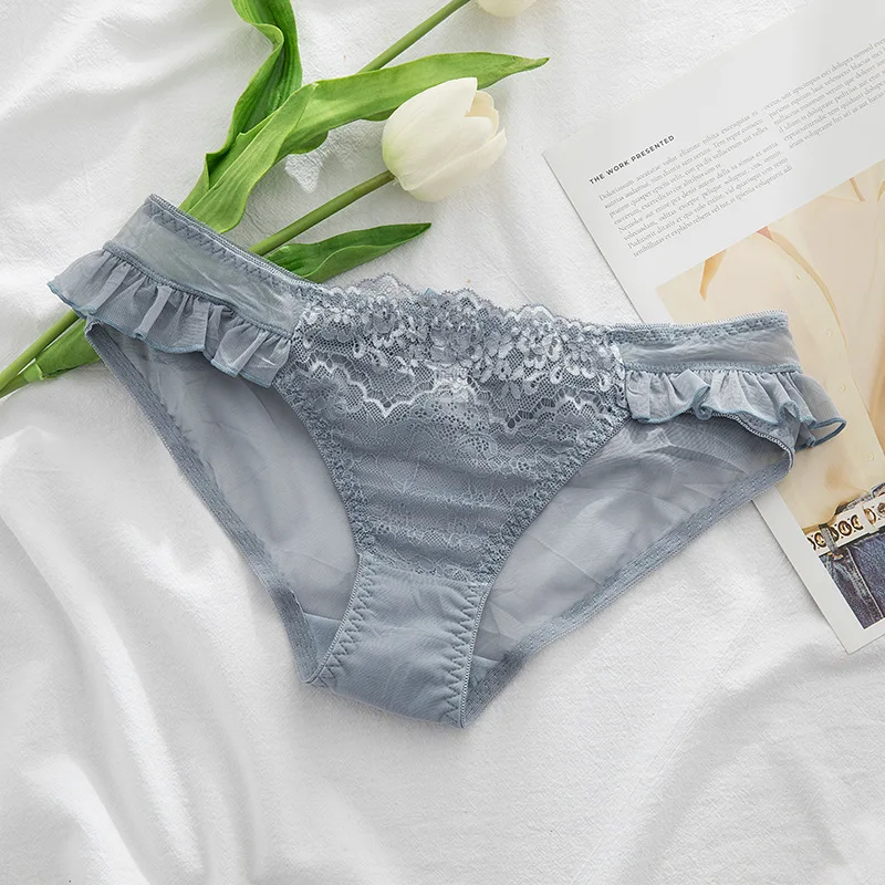 Bow tie lace underwear for women, sexy tulle underwear with wooden ear edge design, pure cotton crotch for women’s underwear