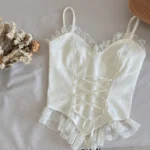 Clothes Blouses Sexy Crop Tops Women Corset Lace Bandage T-shirt Camisole Woman Sling Tank Top Fashion Sleeveless Waistcoat Gift