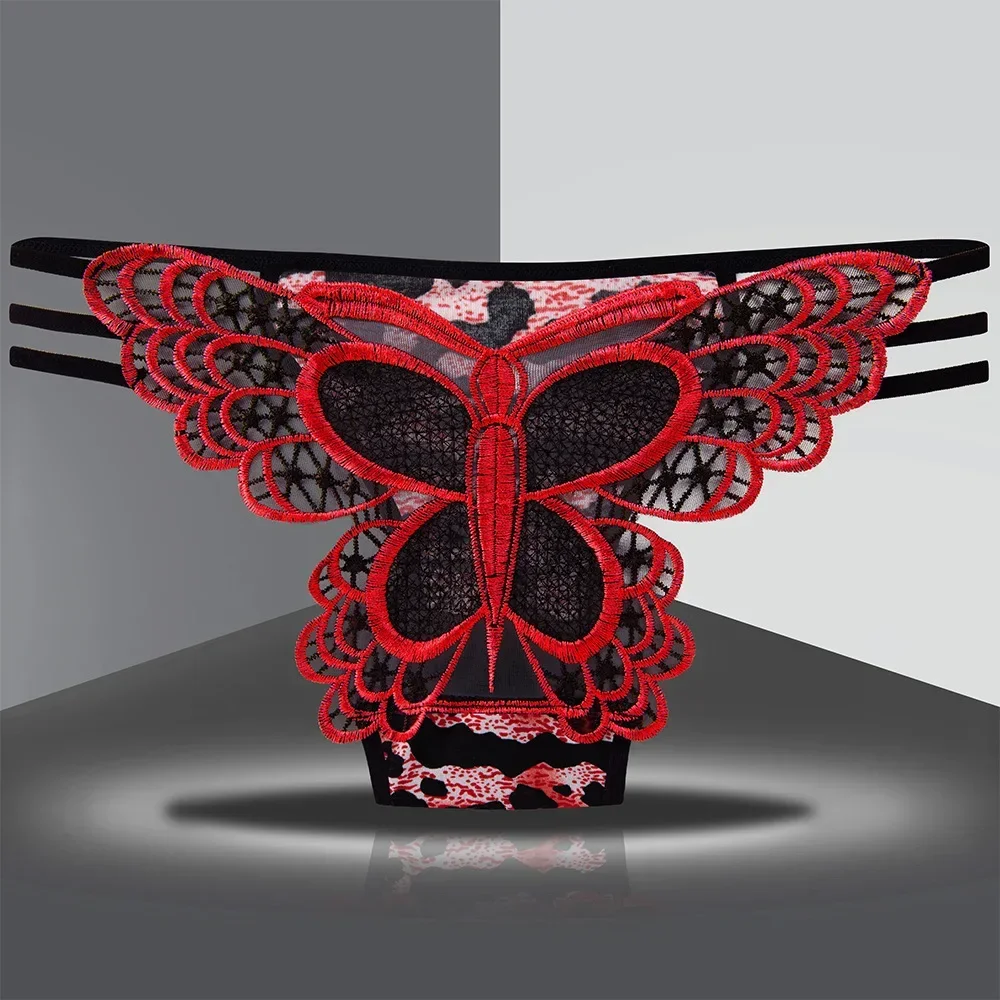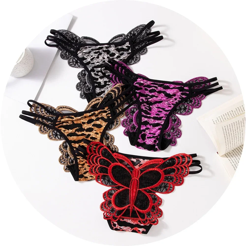 Cute Butterfly Embroidery Women Thongs And G strings Sexy Transparent Mesh Briefs Adjustable Waist Panties Culotte Femme