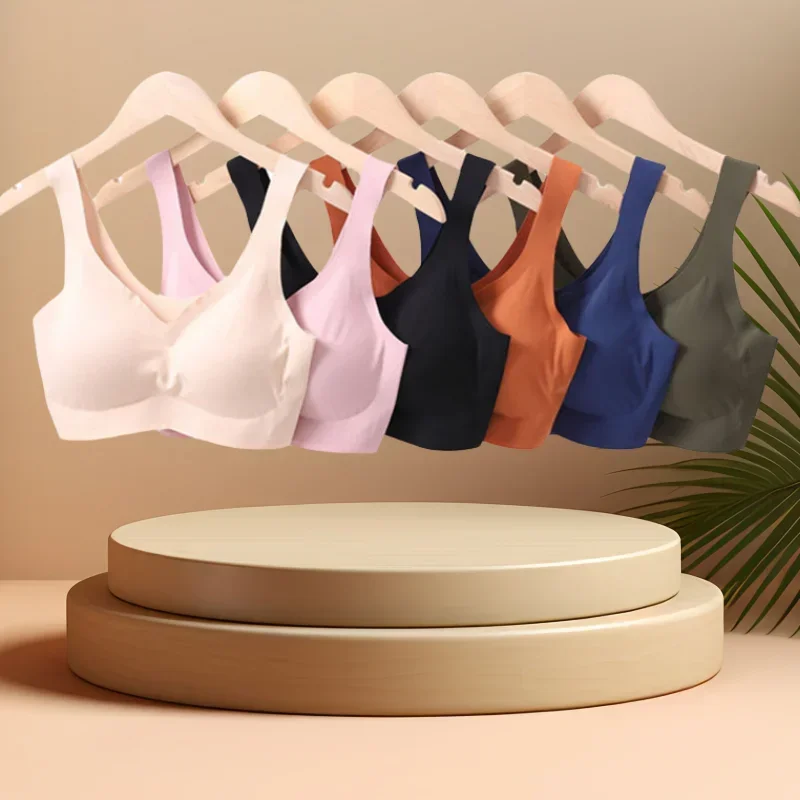 Ice Silk Bra Seamless Vest Bras Women Push Up Underwear Lingerie Sleep Top Padded Bralette No Rim Gathering Shockproof Sports