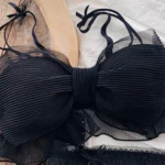 Japanese Bras Lolita Girls Folds Bow Lovely UnderwearFolding Wrinckle Chiffon Bow Rimless Bra Comfortable Sweet Cute Bralette