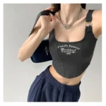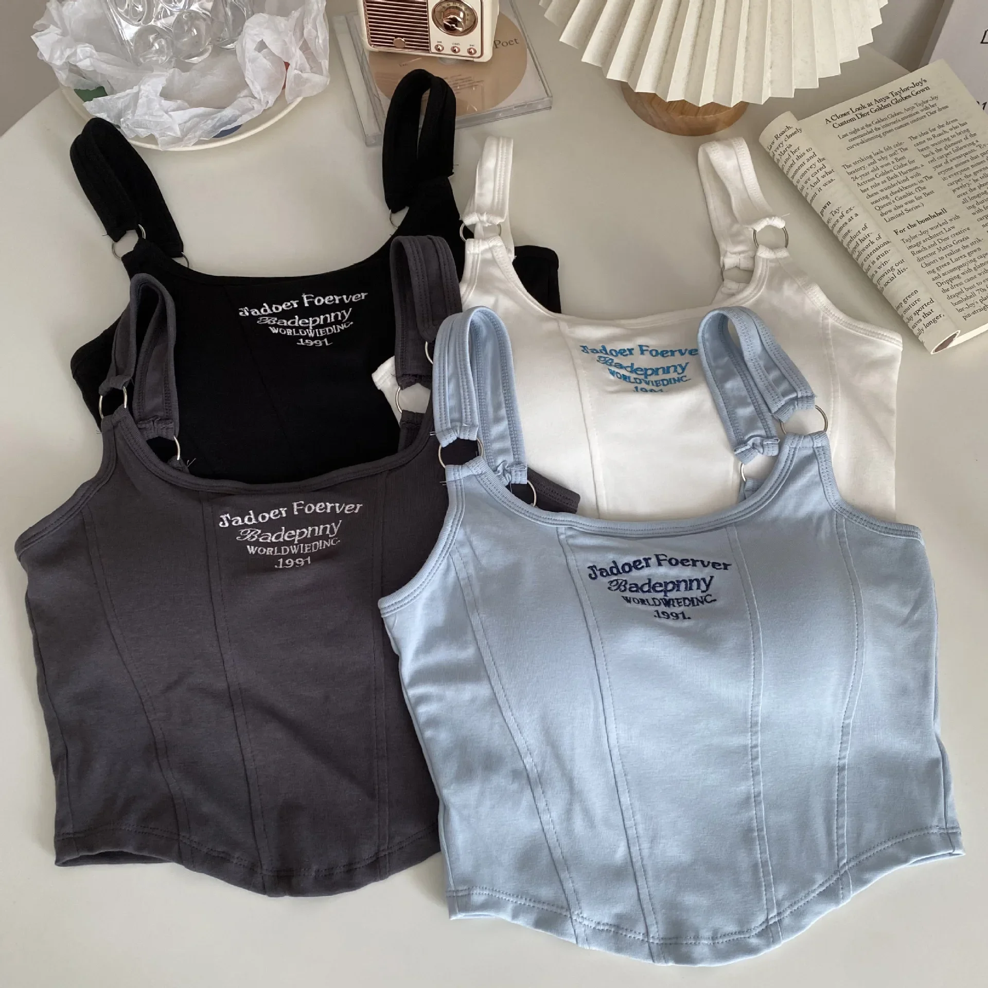 Striped bra pad sexy tank top Y2K solid color short women’s T-shirt tank top exposed navel top sleeveless exposed navel tank