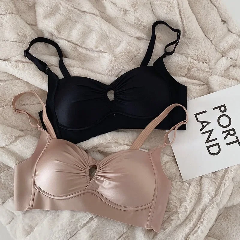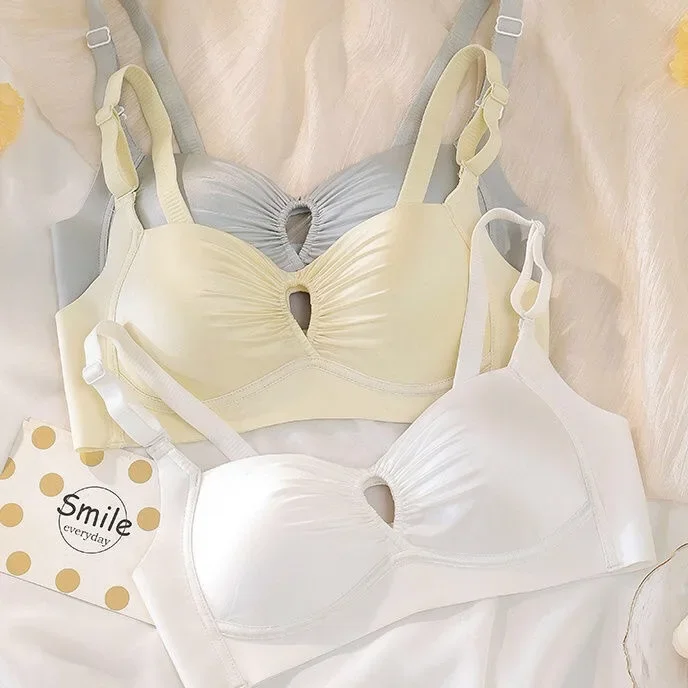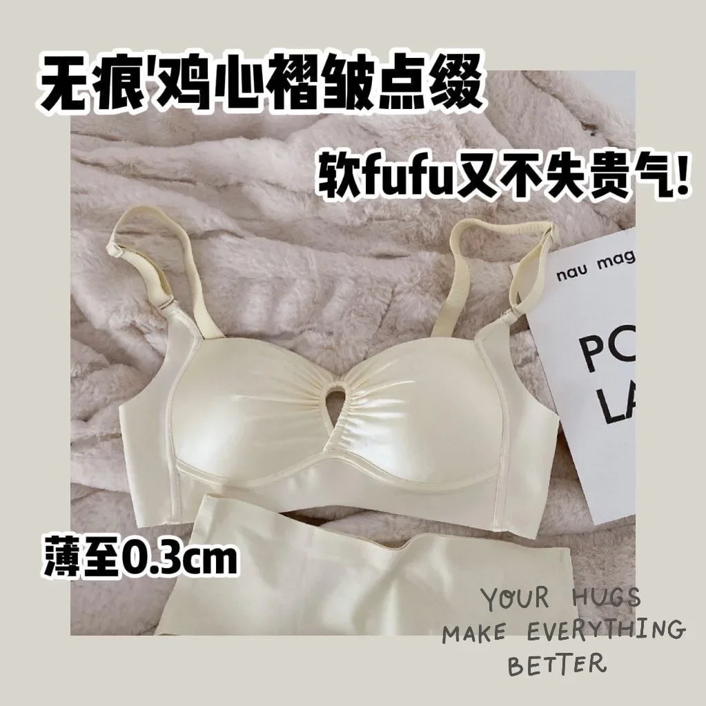 Traceless 3d Cup Underwear Women’s Adjustable Non-Wire Top Support Push-Up Text Bra Summer Thin Bra Set