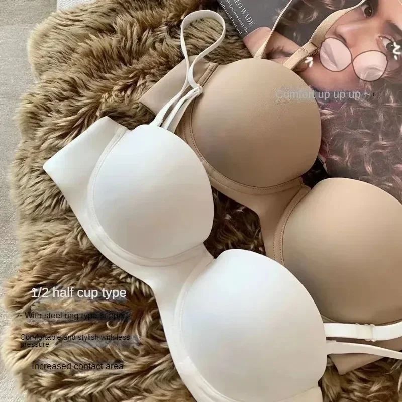 Womens 1/2 Cup Thickened Steel Ring Sexy Bra Underwear European and American Style Push-up Big Breasts Smooth Seamless Bra
